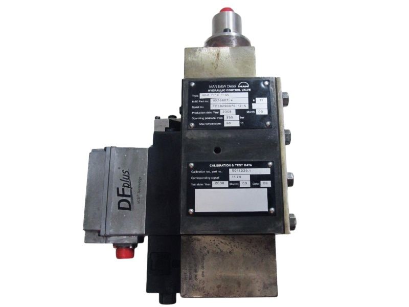 Válvula hidráulica MAN B&W Diesel, Hydraulic Control Valve MAN, MBD FIFA 1-45, MAN Diesel engine parts, válvula de controle hidráulico marítima, peça motor navio MAN, spare parts MAN B&W, válvula 5036807-4, válvula pressão 250 bar, marine diesel hydraulic valve.