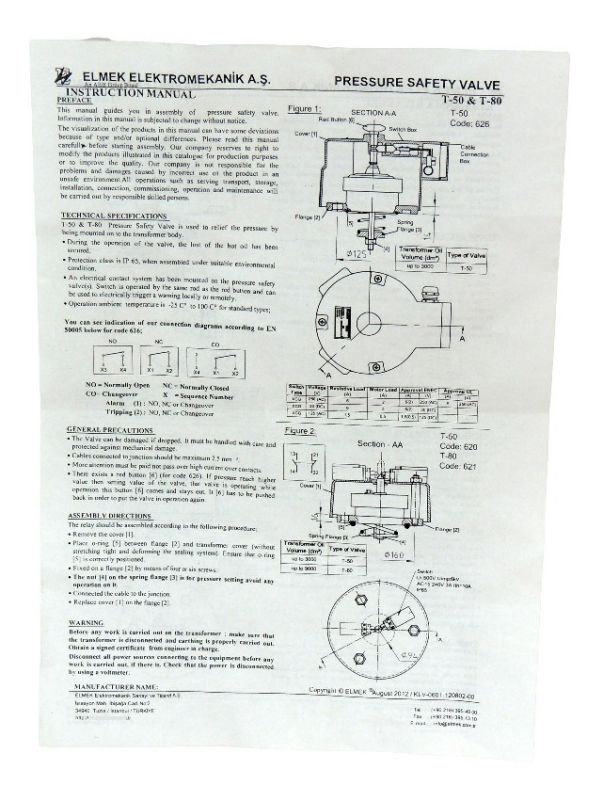 Fabricada pela Elmek Elektromekanik A.S., referência internacional em válvulas industriais de segurança, este modelo T-50 é amplamente utilizado em transformadores, sistemas hidráulicos, óleo térmico, vapor, compressores, tanques pressurizados e plantas industriais críticas.