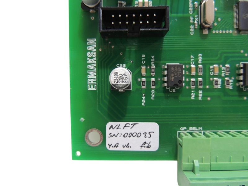 Placa Ermaksan NLFT V1.2, circuito eletrônico industrial, controle de máquina CNC, placa de comando, placa relé industrial, módulo eletrônico Ermaksan, placa de dobra e corte, automação industrial.