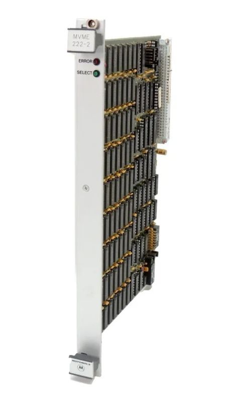 Placa controladora de memória VMEbus Motorola Microsystems, modelo MVME 222-2, utilizada em sistemas industriais baseados em VME para expansão de memória e suporte a aplicações críticas de tempo real.