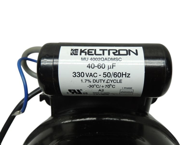 Equipado com proteção térmica integrada e capacitor de partida Keltron de 40–60 µF / 330V e capacitor de funcionamento Globe de 10 µF / 440V, o conjunto garante desempenho confiável, baixa vibração e longa durabilidade.
