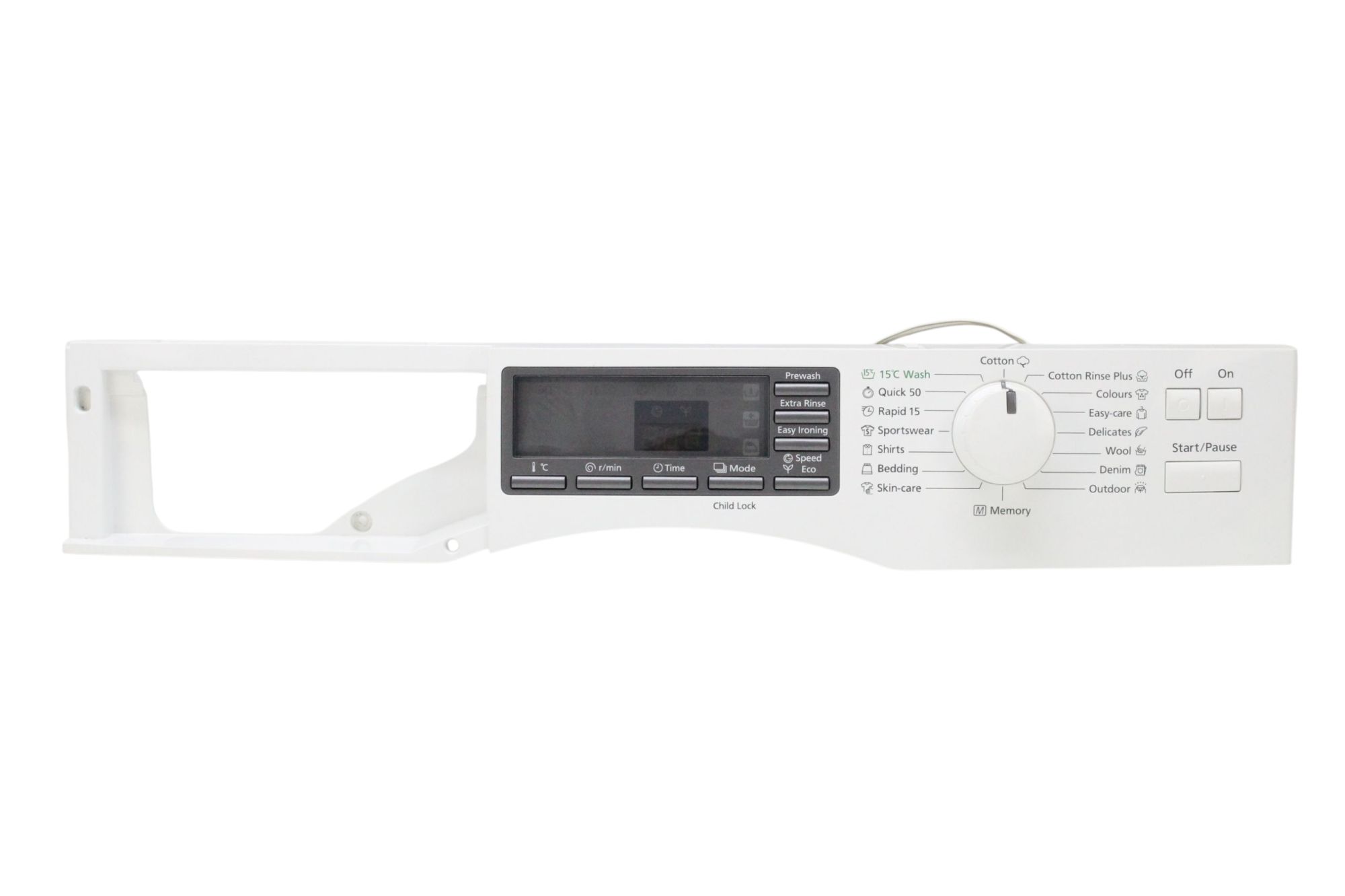 Painel frontal eletrônico completo para lavadora de roupas modelo W2431 / 7JR00 / W7IK00. Ideal para substituição em máquinas com painel danificado, trincado ou com falhas nos botões/visores.