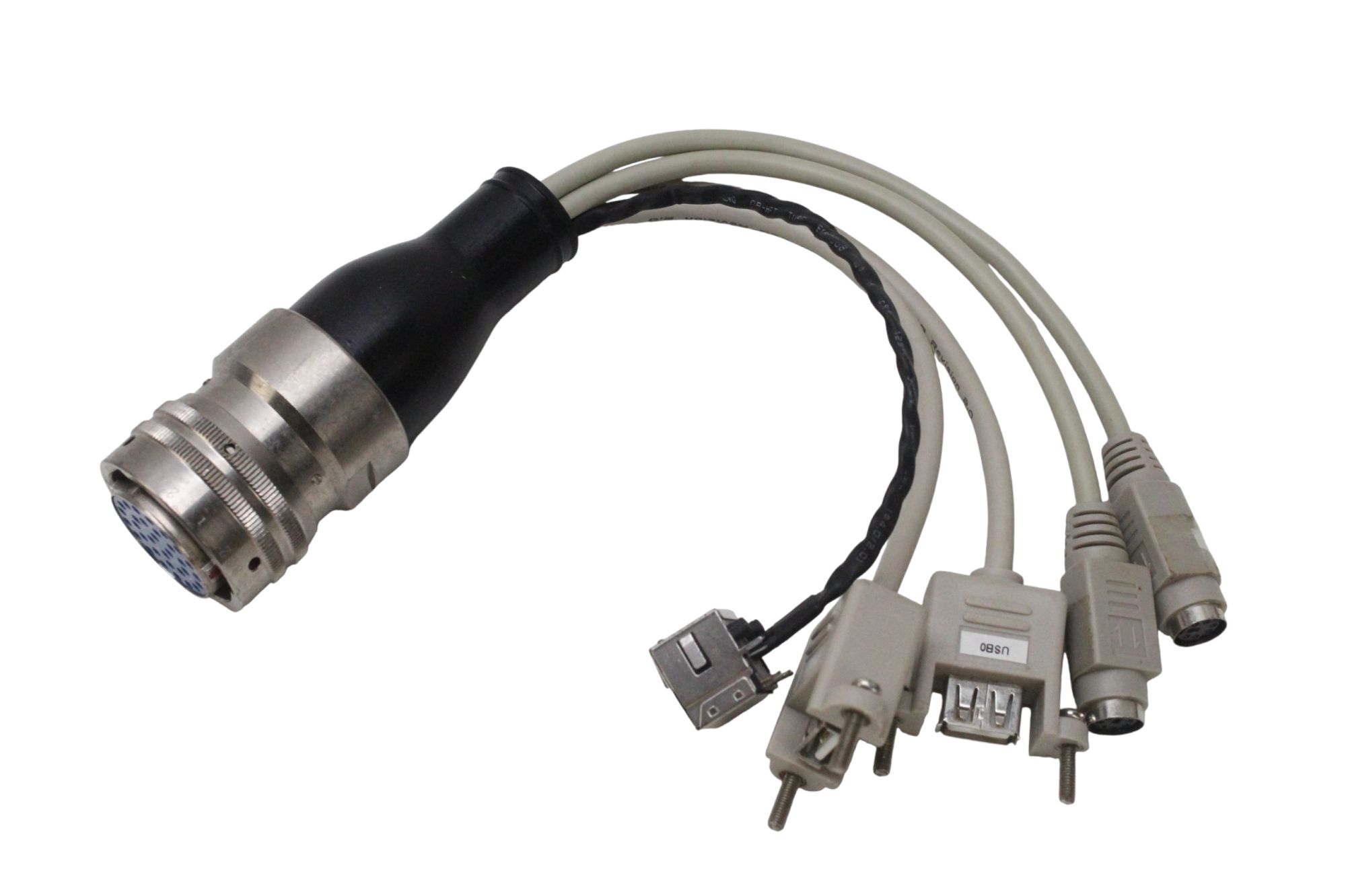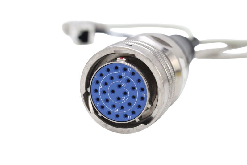 Cabo conector industrial modelo CB-2394-15, desenvolvido para aplicações de alta confiabilidade em sistemas eletrônicos e de automação. Possui conector circular de 32 pinos (furos) robusto, com blindagem metálica e terminação em múltiplos conectores (USB, PS/2 e outros padrões), permitindo integração prática e segura em equipamentos industriais, laboratoriais e automotivos.