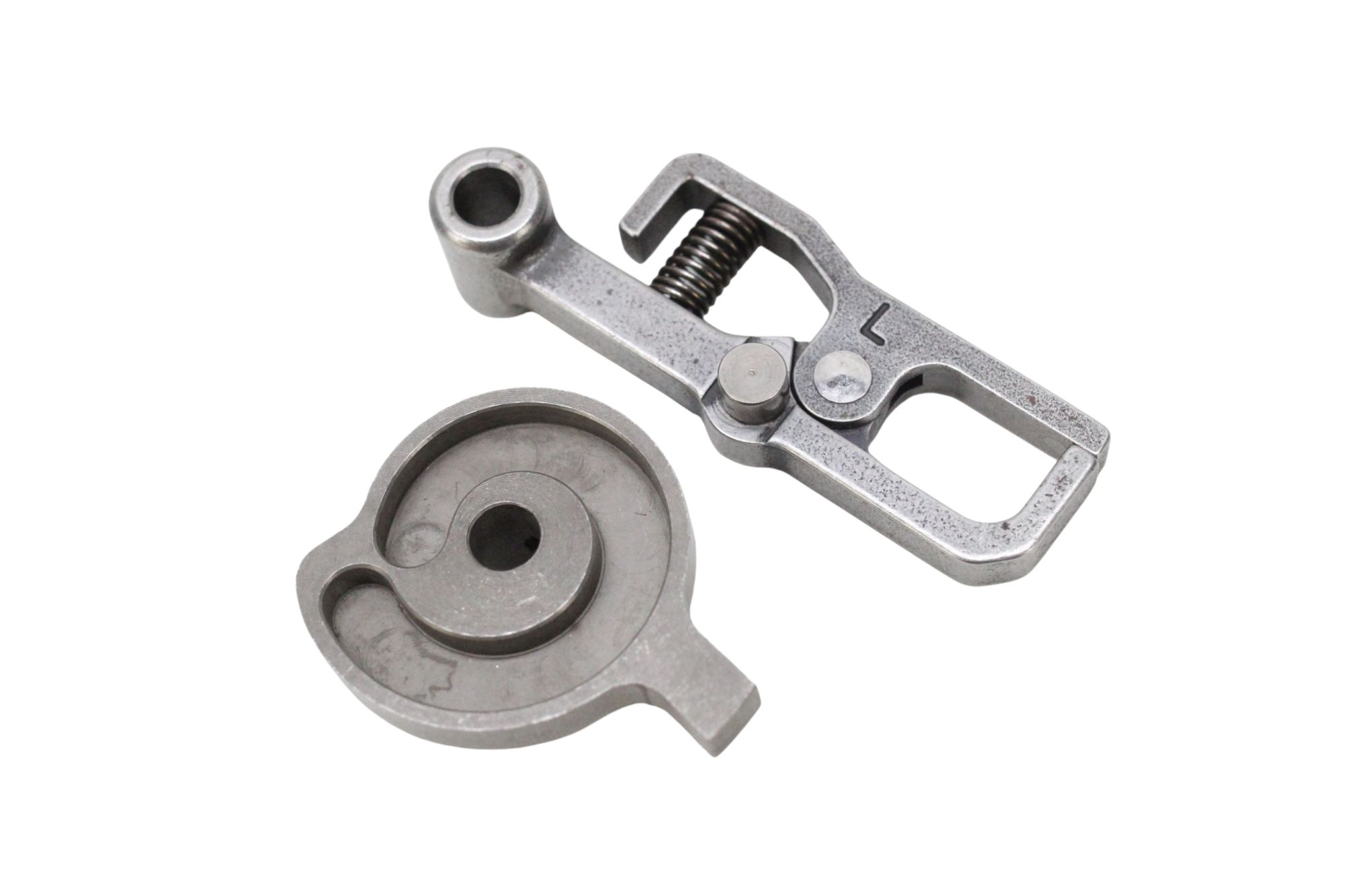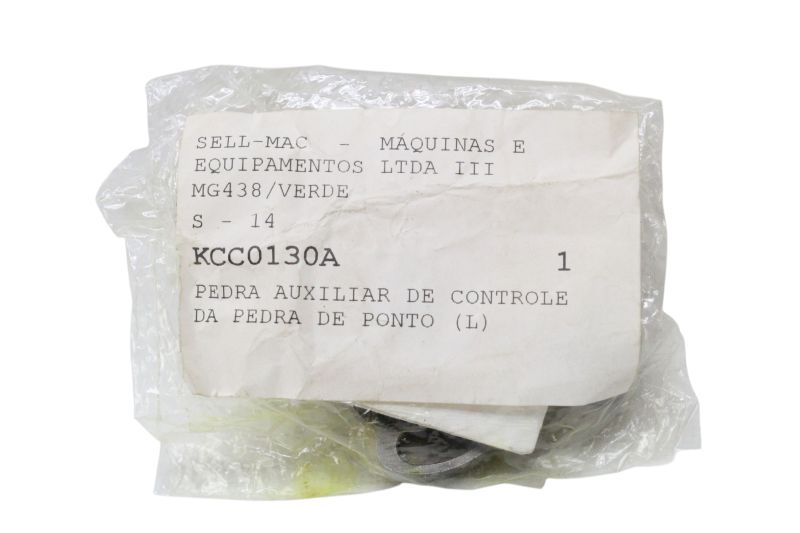 Conjunto de peças metálicas originais SELL-MAC, modelo KCC0130A, utilizadas como pedra auxiliar de controle da pedra de ponto (lado esquerdo) em máquinas de costura industriais.