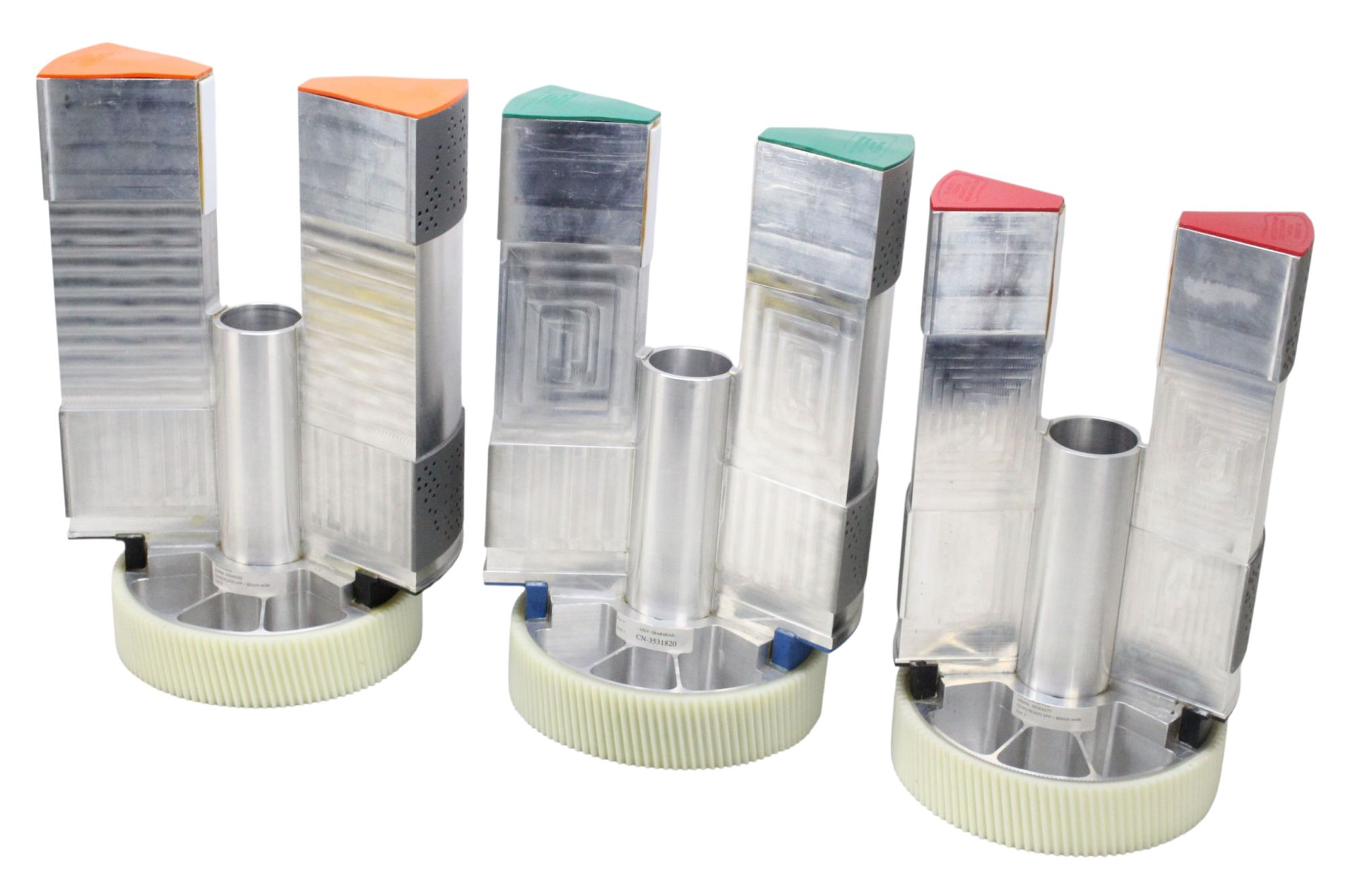 Lote de cabeçotes rotativos da Machintek Corporation (EUA), de três modelos "Gearhead" SSP, com corpo em alumínio usinado de alta precisão e engrenagem base em nylon técnico.
