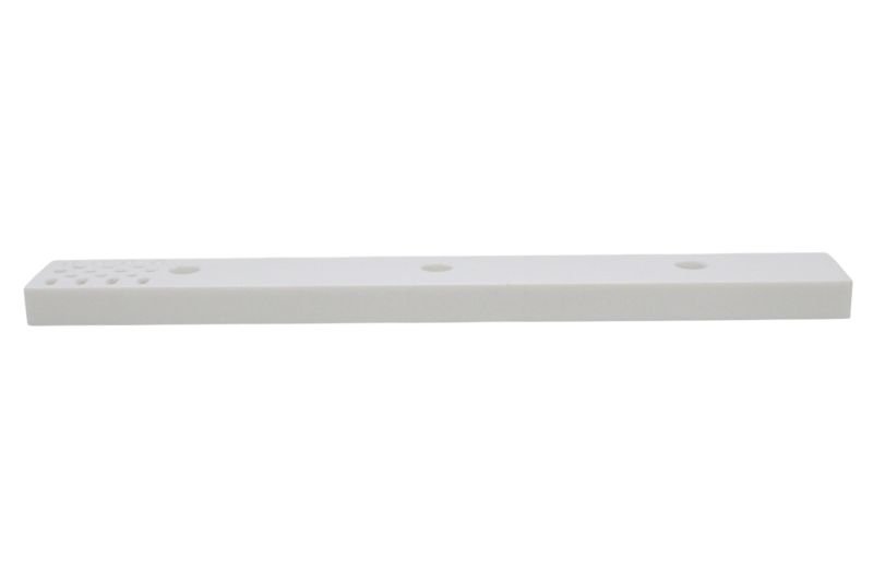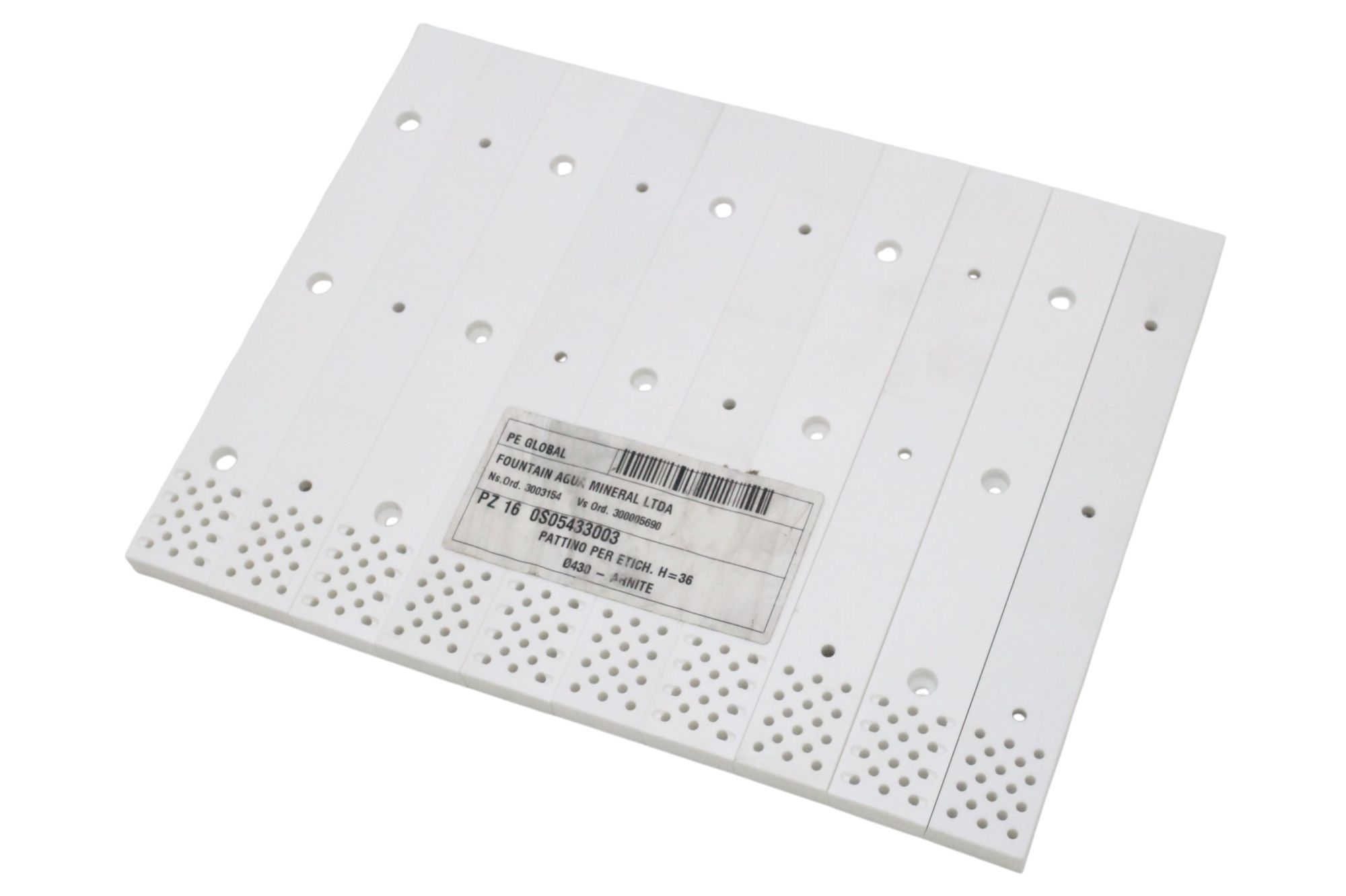 Guia perfurada de Arnite (PBT reforçado) utilizada em linhas de envase e etiquetagem automática, ideal para equipamentos industriais como OCME, Krones, PE Labellers, entre outros. Usa perfuração diferente (modelo PZ 16 0505433003) alternativa do modelo PZ 16 0505433006