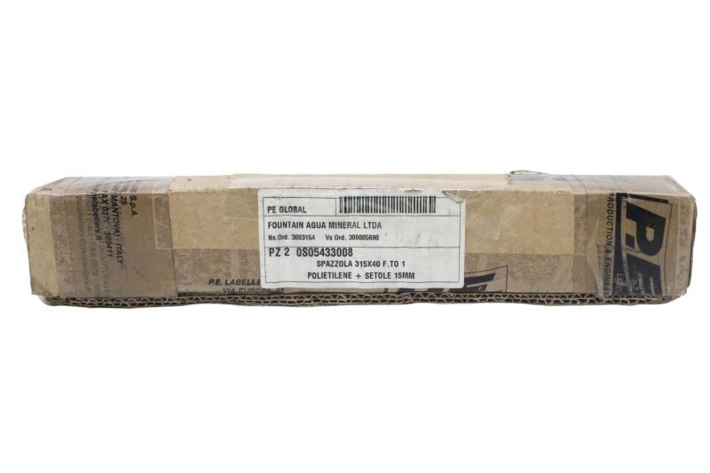 Escova industrial linear, escova para rotuladora, PE Labellers, peça linha de envase, escova de polietileno 315×40, setole 15 mm, Fountain Água Mineral, linha engarrafamento, escova para esteira transportadora, peça original italiana.