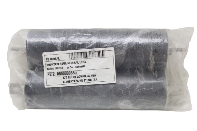 Rolo emborrachado industrial original PE Global, modelo 059000055U, utilizado em máquinas automáticas de etiquetagem para alimentação e tração de filmes de etiquetas (papel ou BOPP).