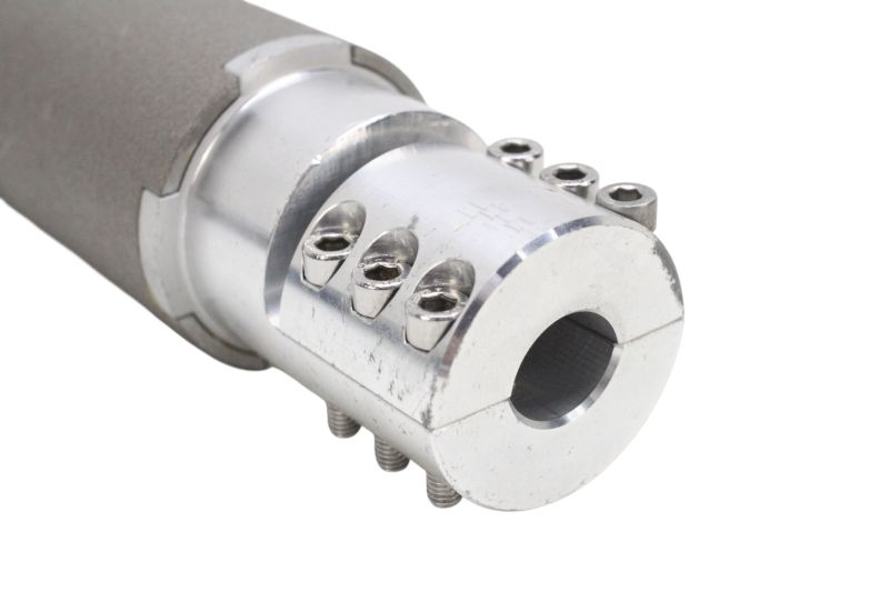 O sistema de fixação bipartido com parafusos Allen permite montagem e desmontagem rápidas no eixo, sem necessidade de parar toda a linha, ideal para manutenção preventiva ou substituição de componentes com agilidade.