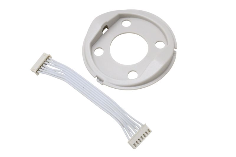 O sensor acompanha cabo flat de 7 vias, base de instalação e corpo selado, pronto para montagem.