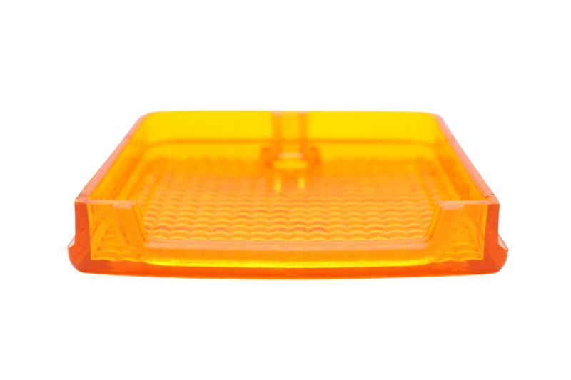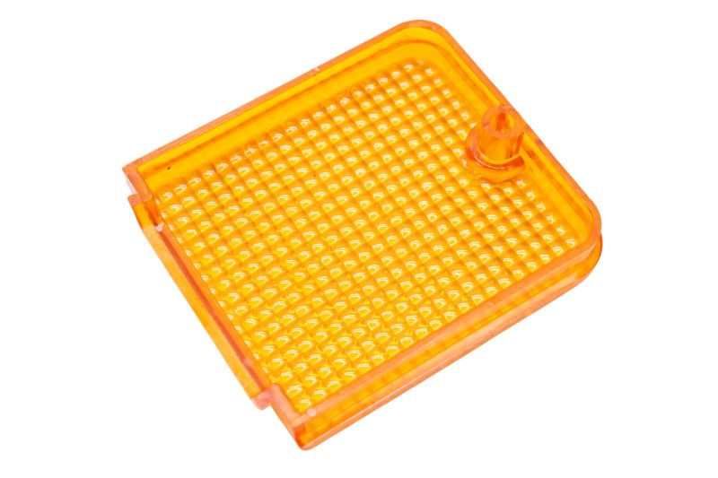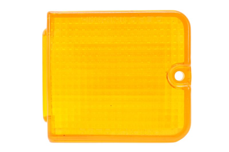 Lente automotiva original DEPO, na cor âmbar, destinada à reposição da lanterna lateral / seta lateral do Suzuki Samurai. Fabricada em plástico translúcido com acabamento prismático interno, garantindo correta difusão da luz e visual original do veículo.