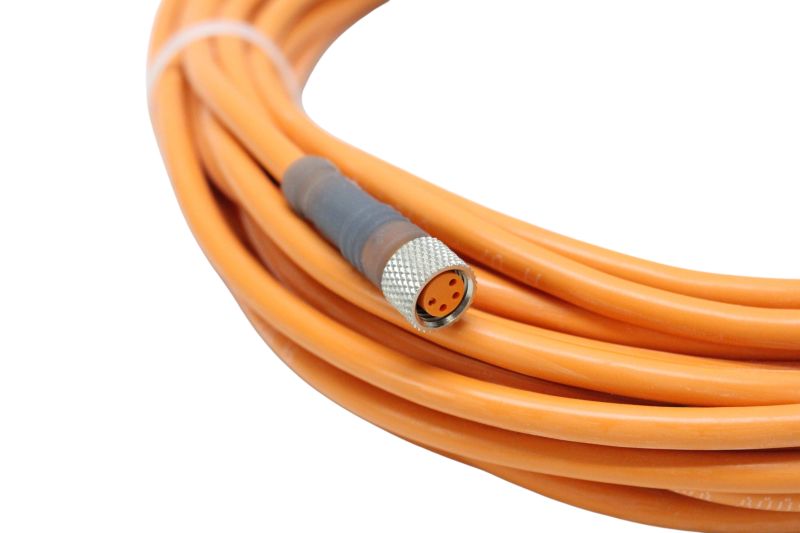 Cabo original Omron para conexão de sensores industriais com conector M8, indicado para aplicações de automação industrial, máquinas, painéis elétricos e sistemas de controle. Possui comprimento de 10 metros, revestimento laranja de alta visibilidade e resistência, ideal para ambientes industriais. Compatível com sensores Omron e outros equipamentos que utilizem padrão de conexão M8. Produto destinado a instalações fixas, substituição ou reposição em linhas de produção, sistemas de medição, detecção e controle.