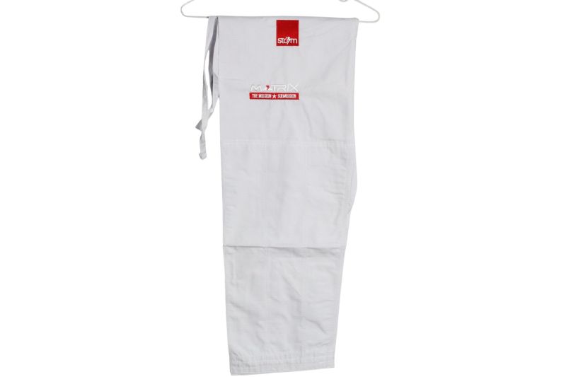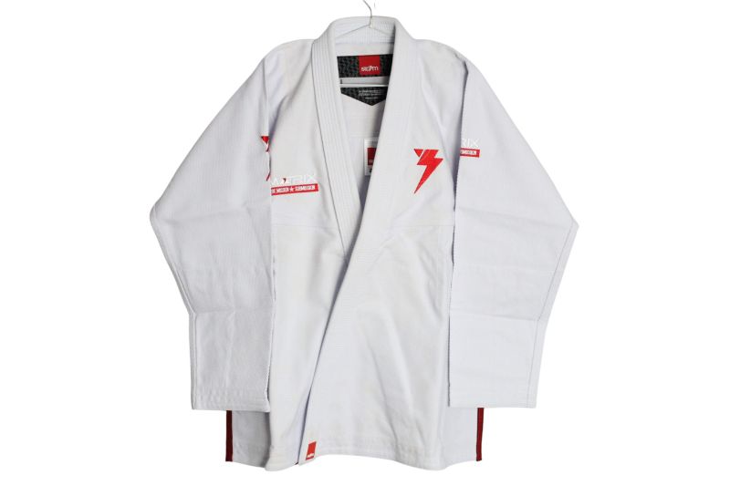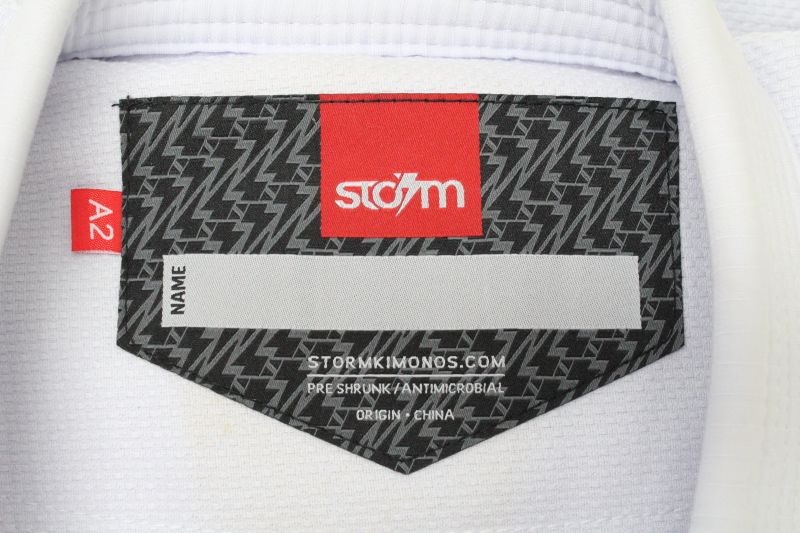 Kimono Storm Stealth Matrix II original, desenvolvido para Jiu-Jitsu Brasileiro (BJJ), combinando leveza, resistência e conforto para treinos e competições. Modelo adulto tamanho A2, na cor branca, com costuras reforçadas, tecido pré-encolhido e tratamento antimicrobiano.