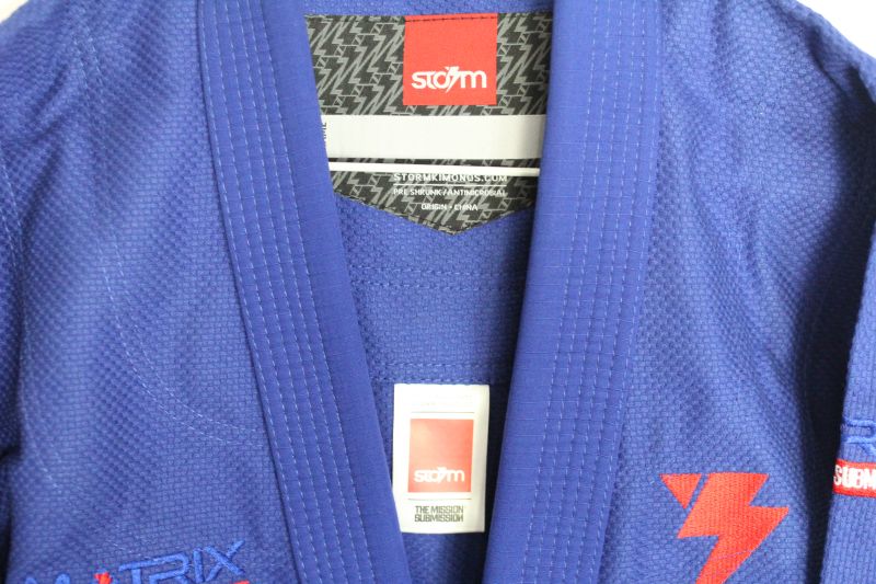 Kimono Storm Stealth Matrix II original, desenvolvido para Jiu-Jitsu Brasileiro (BJJ), combinando leveza, resistência e conforto para treinos e competições. Modelo adulto tamanho A1, na cor azul, com costuras reforçadas, tecido pré-encolhido e tratamento antimicrobiano.