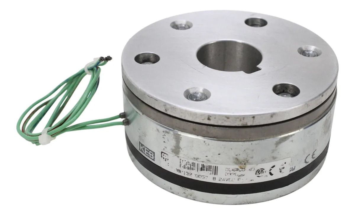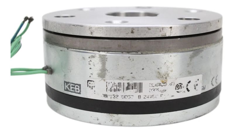 Freio magnético industrial KEB original, desenvolvido para aplicação em motores elétricos e sistemas de automação industrial que exigem parada segura, rápida e precisa.