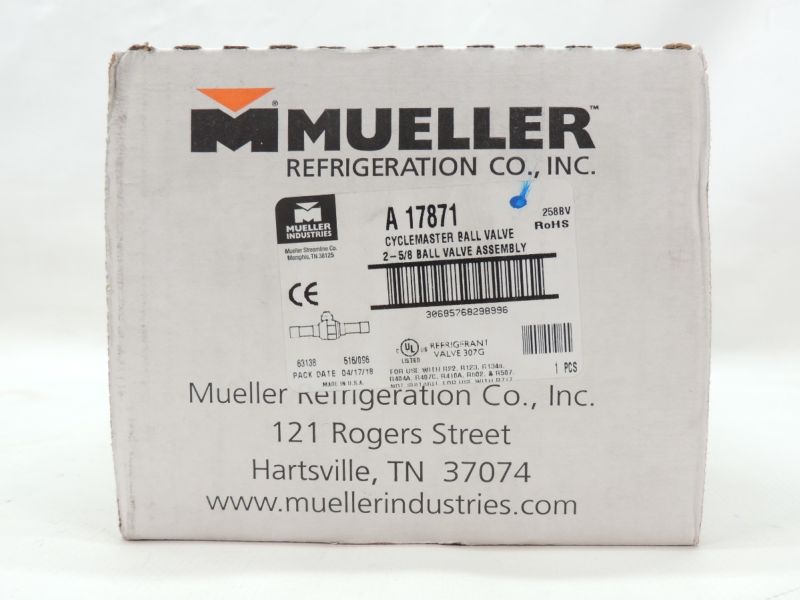 Válvula de esfera Cyclemaster original Mueller Refrigeration, com conexão ODF 2-5/8”, desenvolvida para aplicações profissionais em refrigeração comercial e industrial.