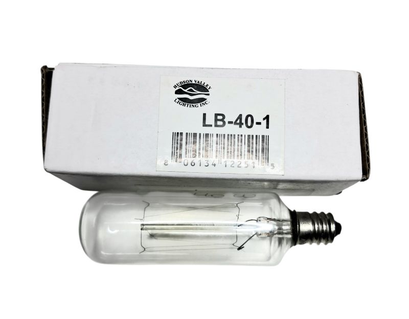 Lâmpada incandescente tubular original Hudson Valley Lighting Inc., modelo LB-40-1, nova e na caixa original.