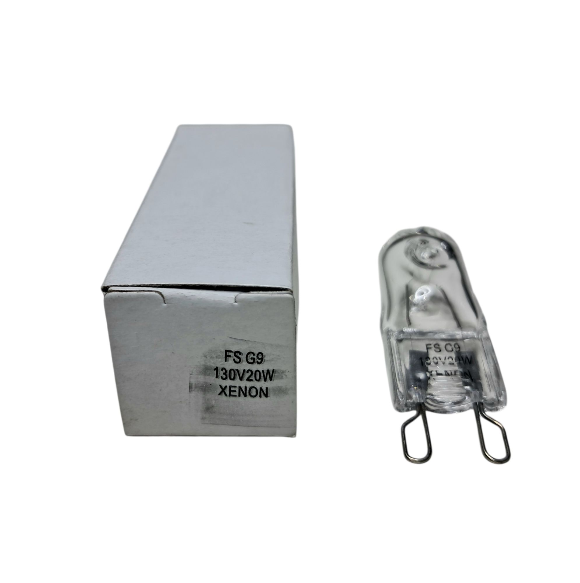 Lâmpada halógena G9 Xenon 20W 110V, nova na caixa, ideal para aplicações decorativas e funcionais em lustres, spots, arandelas e luminárias internas.