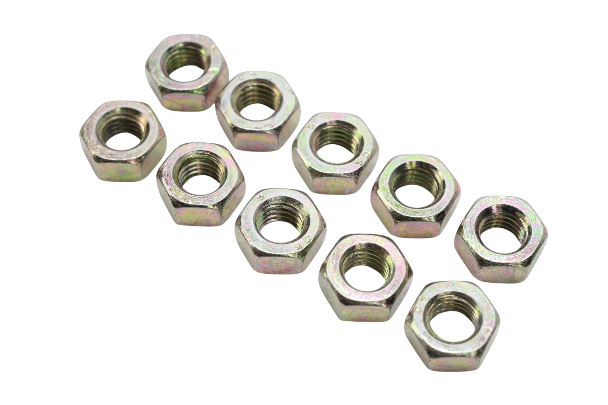 Lote com 78 porcas sextavadas M8, fabricados conforme norma DIN 934, com acabamento zincado para proteção contra oxidação.