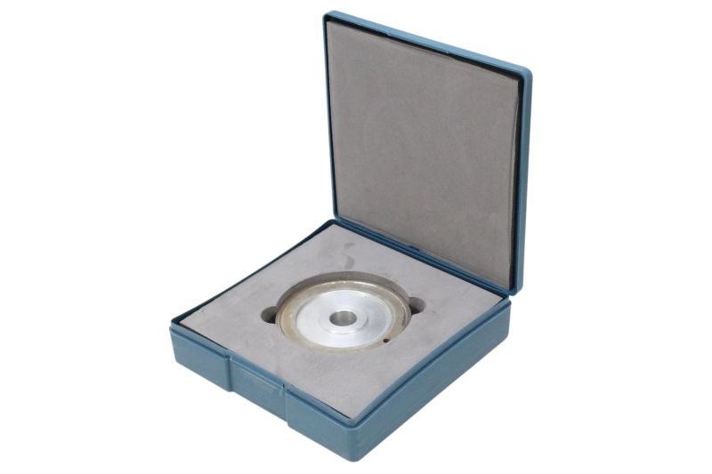 Rebolo diamantado profissional, novo, acompanhado de caixa original de armazenamento, ideal para operações de retífica, afiação e acabamento de alta precisão em materiais duros.