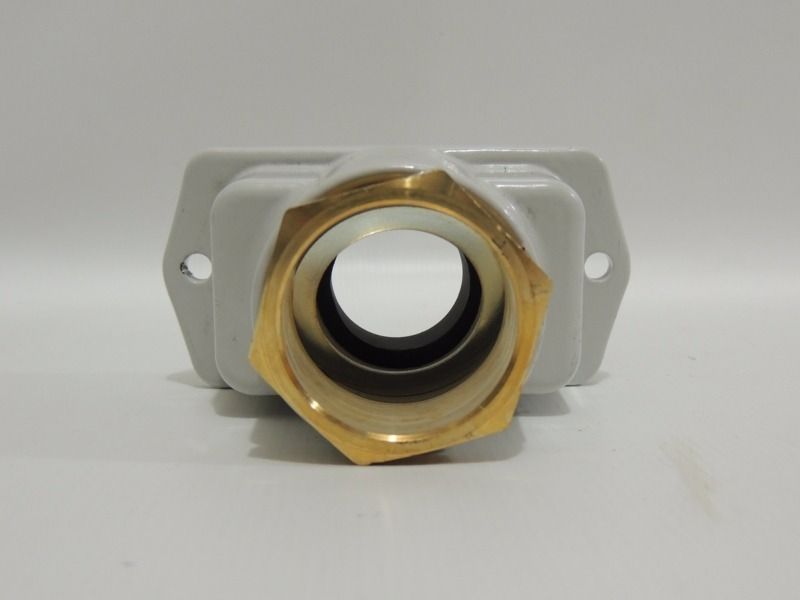 Modelo tipo F1 com 1 bucha 1”1/4” (rosca metálica), ideal para fechamento e passagem de cabos com ângulo inclinado, proporcionando melhor direcionamento e organização da instalação.
