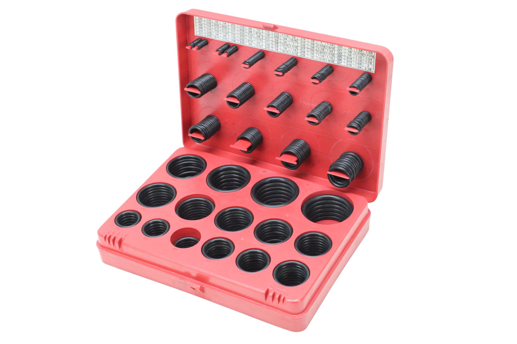 Kit completo de anéis de vedação O-Ring em borracha NBR (Nitrílica), ideal para aplicações hidráulicas, pneumáticas, automotivas e industriais.