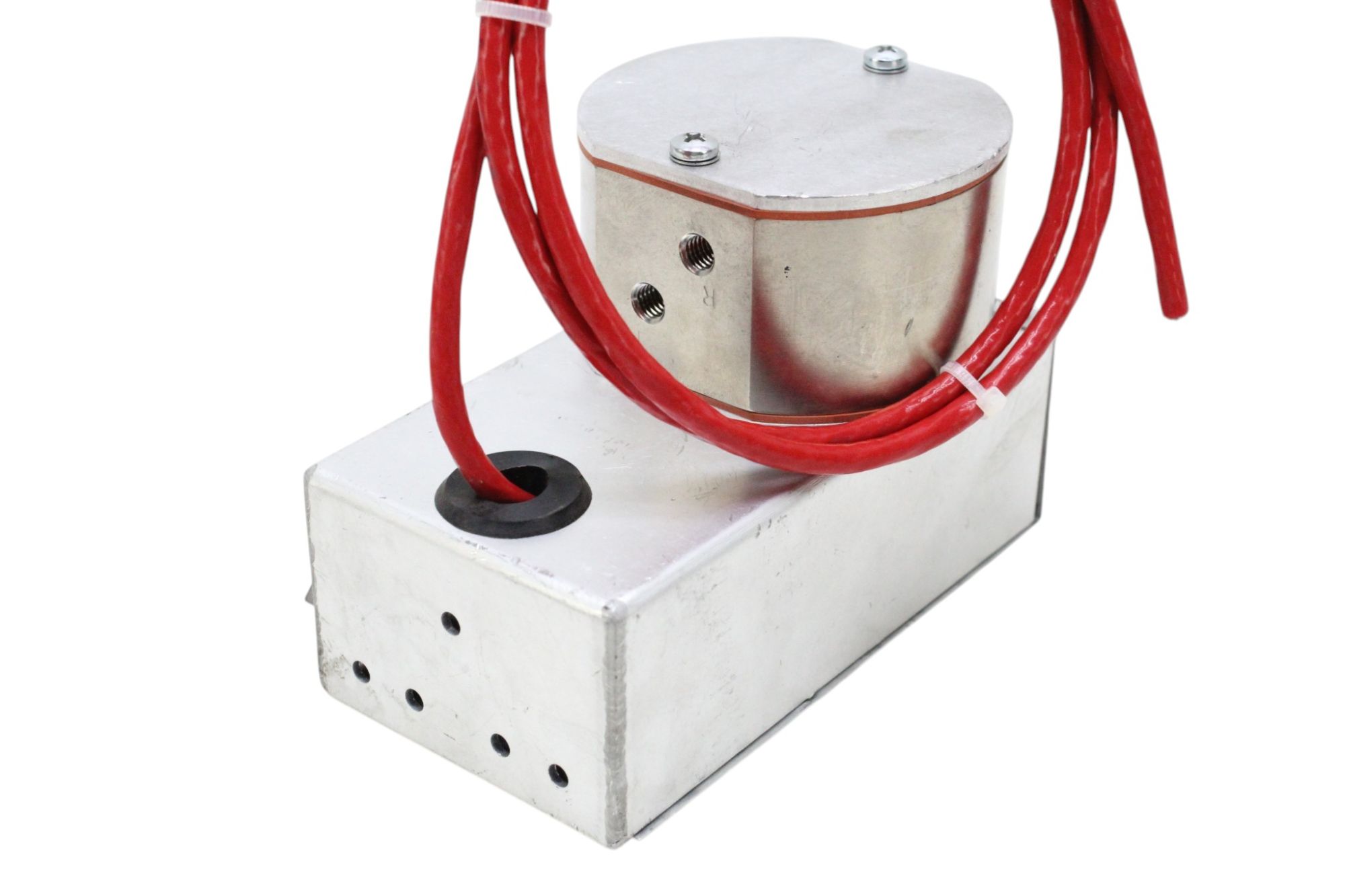 Este tipo de detector opera medindo a diferença de condutividade térmica entre gases, permitindo identificar composição e concentração com alta estabilidade e repetibilidade. Possui configuração com referência e medição (terminais M e R), característica típica de detectores TCD de precisão.